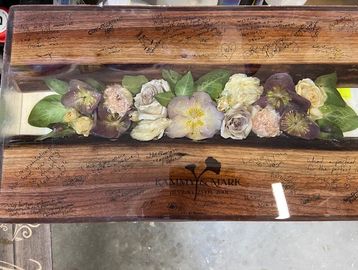 24" X 12" x 2"D FLOWER PRESERVATIONS WOOD CHARCUTERIE BOARD $865