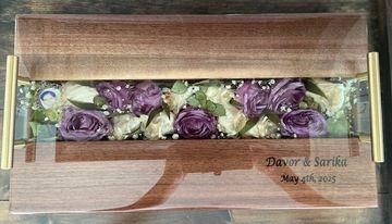 Wood Tray with pressed flowers in resin