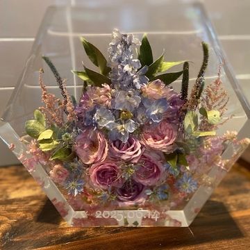 8" x 3"D HEXAGON $575 wedding bouquet preservation memorial flower preservation