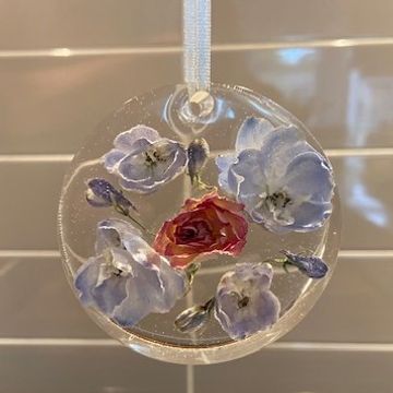 CIRCULAR ORNAMENT $55 Smaller/filler/pressed flowers only or a PHOTO can be in place of small flowers