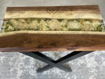 Wood Guest Book Charcuterie Boards and other wood offerings add a touch of elegance to events. Guests can leave messages and signatures on these boards, creating lasting memories. These wooden items include decor and gifts, showcasing craftsmanship and timeless beauty. wedding bouquet preservation
